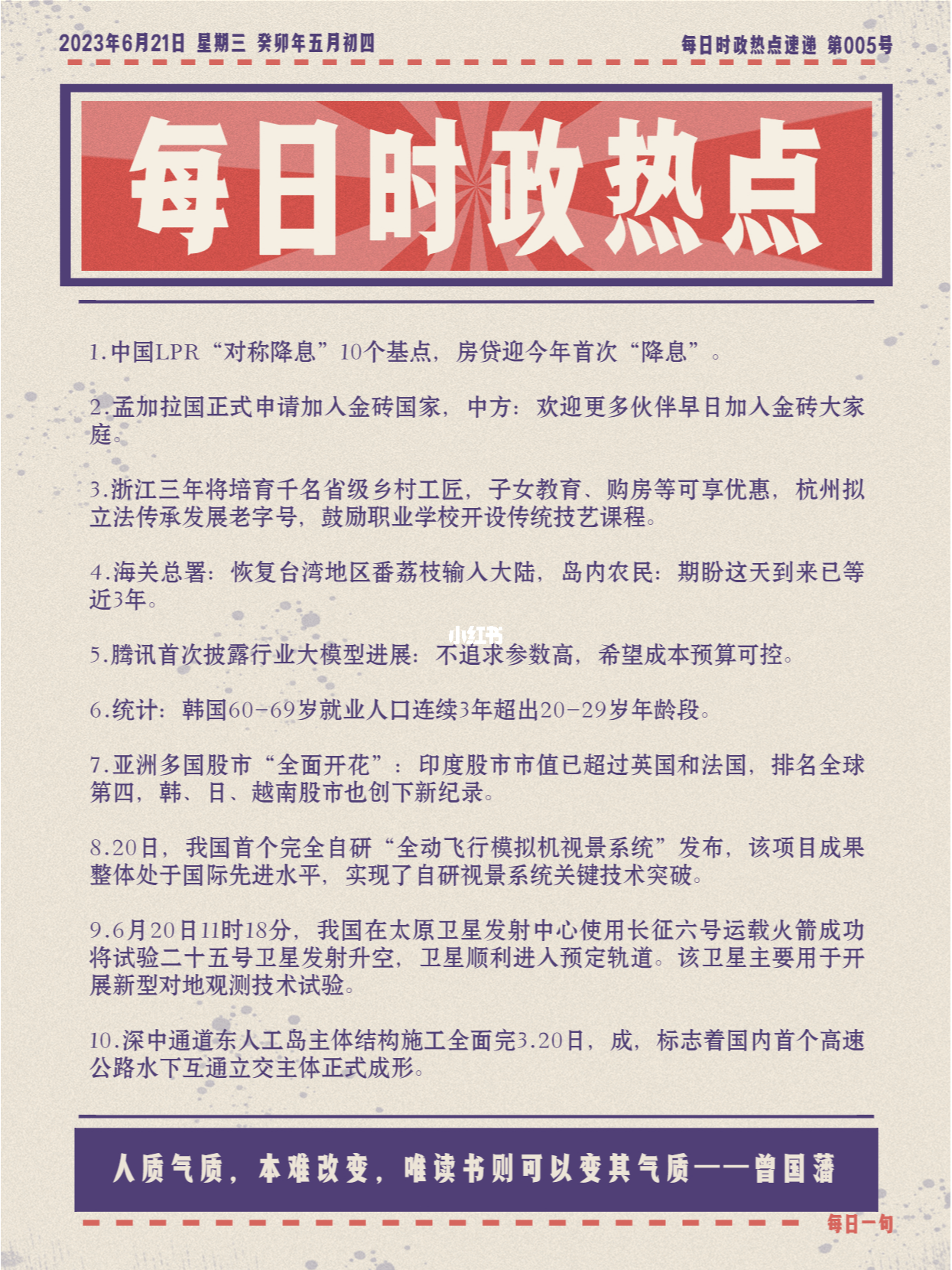 關(guān)注最新熱點(diǎn),激發(fā)我們的熱情和動(dòng)力,我們要將這種熱情轉(zhuǎn)化為實(shí)際行動(dòng),勇敢追求自己的夢(mèng)想,不要害怕失敗,因?yàn)槭∈浅晒Φ膲|腳石,每一次嘗試都是一次歷練,每一次歷練都讓我們更加成熟,只要我們堅(jiān)持不懈,終有一天會(huì)實(shí)現(xiàn)心中的夢(mèng)想。