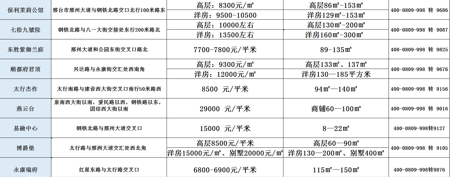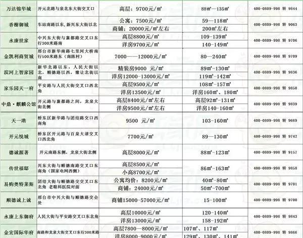 邢臺最新房價報價表,家的溫馨故事概覽