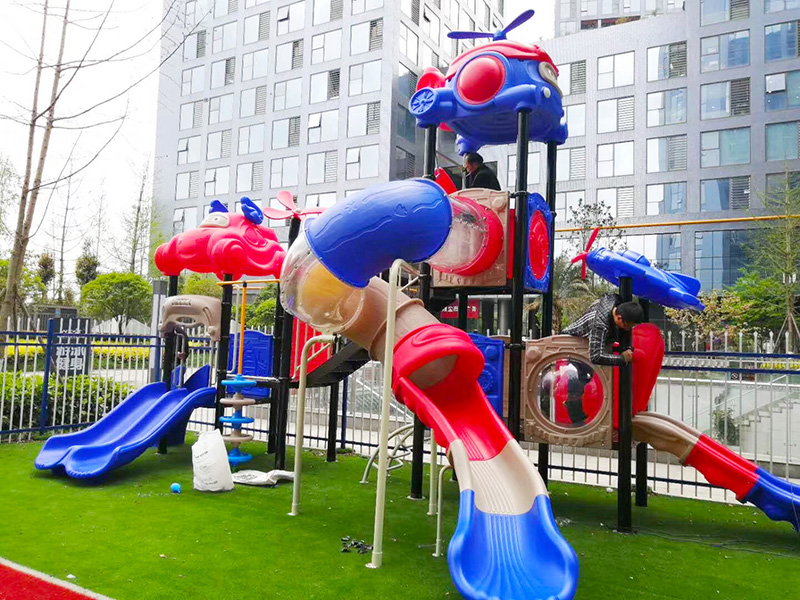 2、多功能滑梯組合:廣場上的大型滑梯一直是孩子們的最愛,新型的多功能滑梯組合集攀爬、滑梯、秋千等功能于一體,為孩子們提供了更加豐富的游玩體驗。