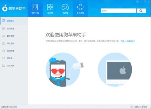 2、使用:安裝完成后,打開(kāi)蘋(píng)果助手,根據(jù)您的需求進(jìn)行同步數(shù)據(jù)、備份資料、下載應(yīng)用等操作。